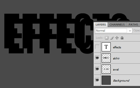 | Membuat Teks Berkesan 3D dengan Photoshop Posted: 04 Dec 2012 02:10 AM PST Pada kesempatan kali ini, kita akan bahas bagaimana caranya untuk membuat efek berkesan 3 Dimensi dengan memanfaatkan pencahayaan, shadow, dan Layer Styles di Photoshop. Tutorial ini cocok untuk pemula dan tingkat menengah untuk memahami tehnik lighting dasar menggunakan Adobe Photoshop. Langsung saja kita mulai tutorialnya, selamat membaca dan mempraktekkan. Step 1 Buat dokumen baru di Photoshop (Ctrl+N), ukuran 1000x1000 pixels, resolusi 300 DPI, dan mode warna RGB. Step 2 ganti warna layer 'Background' dengan warna #494949. Step 3 Buat sebuah teks, dalam hal ini saya membuat 'EFFECTS' menggunakan font Bebas Neue. Kamu bebas untuk menggunakan teks lain, it's just a sample! :) Step 4 Klik ganda layer 'effects' untuk membuka jendela Layer Styles. Kemudian klik gradient Overlay pada Layer Styles : ubah blend mode menjadi Multiply, opacity menjadi 50% dan angle menjadi -65. Jika sudah, klik Ok untuk keluar dari jendela Layer Styles. Step 5 Pada Layer Palette, klik ikon Add New Layer untuk membuat layer baru, beri nama layer baru dengan 'awal'. Kemudian tekan Ctrl+Klik pada thumbnail layer 'effects' untuk mengambil seleksi bentuk pada layer tersebut. Sementara seleksi aktif, klik kembali layer 'awal', tekan tombol D di keyboard untuk mengubah warna dasar menjadi hitam putih lalu tekan Alt + Delete untuk mengisi layer 'awal' dengan warna hitam. Step 6 Duplikat layer 'awal' dengan menekan tombol Ctrl+J di keyboard, beri nama layer hasil duplikasi dengan 'akhir' dan posisikan layer 'akhir' seperti gambar dibawah. Jika sudah, drag layer 'awal' dan 'akhir' dibawah layer 'effects' (lihat gambar). Saya sengaja meng-hide layer 'effects' agar kita bisa melihat posisi layer 'awal' dan 'akhir' dengan jelas. Step 7 Sekarang duplikat layer 'awal' berkali-kali dengan menekan tombol Ctrl+J sebanyak 15 kali (untuk 15 hasil duplikasi). Step 8 Kemudian pada layer palette, klik layer 'akhir', tahan Shift di keyboard lalu klik layer 'awal' untuk menyeleksi layer-layer tersebut di layer palette. Jika sudah, klik kanan pada salah satu layer dan pilih Link Layers. Kamu akan melihat akan ada tanda rantai pada layer-layer yang diseleksi tadi. Sementara semua layer tadi aktif dan nge-link, klik ikon Distribute Vertical Center kemudian klik ikon Distribute Horizontal Center untuk membuat layer-layer tadi tersusun sedemikian rupa. Lalu tekan tombol Ctrl+E untuk menggabungkannya dan ubah nama layer hasil penggabungan tadi menjadi 'shadow'. Step 9 Klik layer shadow di layer palette, kemudian pilih Filter > Blur > Motion Blur, dan atur nilai pada jendela Motion Blur seperti gambar dibawah. Step 10 Tekan dan tahan tombol Shift+tanda panah atas kemudian Shift+tanda panah kiri untuk membuat teks bergeser 10 px kebagian atas dan kiri (lihat gambar dibawah). Step 11 Ubah blend mode layer 'shadow' menjadi Multiply dan Opacity menjadi 40%. Step 12 Duplikat layer 'shadow', pada layer 'shadow copy' berikan juga efek motion blur sekali lagi. Tapi kali ini nilai distance-nya dirubah menjadi 70% Step 13 Langkah selanjutnya, buat sebuah layer baru diatas layer 'Background' dan beri nama dengan 'lighting'. Pada layer 'lighting' berikan warna gradasi hitam ke putih dengan Gradient Tool (G) dan atur arahnya seperti gambar dibawah. Jika sudah, ubah blend mode-nya menjadi Overlay dan opacity-nya menjadi 50%. Step 14 Sekarang kita kembali ke layer 'effects', klik ganda layer tersebut untuk membuka jendela Layer Styles. pada jendela Layer Styles, pilih Bevel and Emboss dan atur nilai-nilainya seperti gambar dibawah. Step 15 Masih pada jendela Layer Styles untuk layer 'effects', klik pada Pattern Overlay. Kemudian klik tanda panah seperti yang diillustrasikan digambar dibawah untuk mendapatkan pattern dengan katagori Artist Surfaces. Pada contoh kasus ini, klik pada pattern bernama Washed Watercolor Paper. Ubah blending mode pada Pattern Overlay menjadi Multiply dan Opacity menjadi 75%. Step 16 Terapkan juga efek Pattern Overlay pada layer 'Background'. Tapi kali ini pilih pattern dengan nama Hard Charcoal Light. Ubah juga blending mode menjadi Multiply dan Opacity menjadi 75%, jika sudah klik Ok untuk keluar dan jendela Layer Styles. Hasil Akhir Beginilah hasil akhir untuk tutorial Photoshop kita kali ini. Semoga dapat memberi inspirasi dan manfaat. Kamu dapat berimprovisasi lebih jauh menggunakan tehnik-tehnik pada tutorial kali ini, good luck all! Ikuti FACEBOOK dan TWITTER Desain Studio untuk mendapatkan update terbaru berupa tips, informasi, dan tutorial seputar desain grafis! |